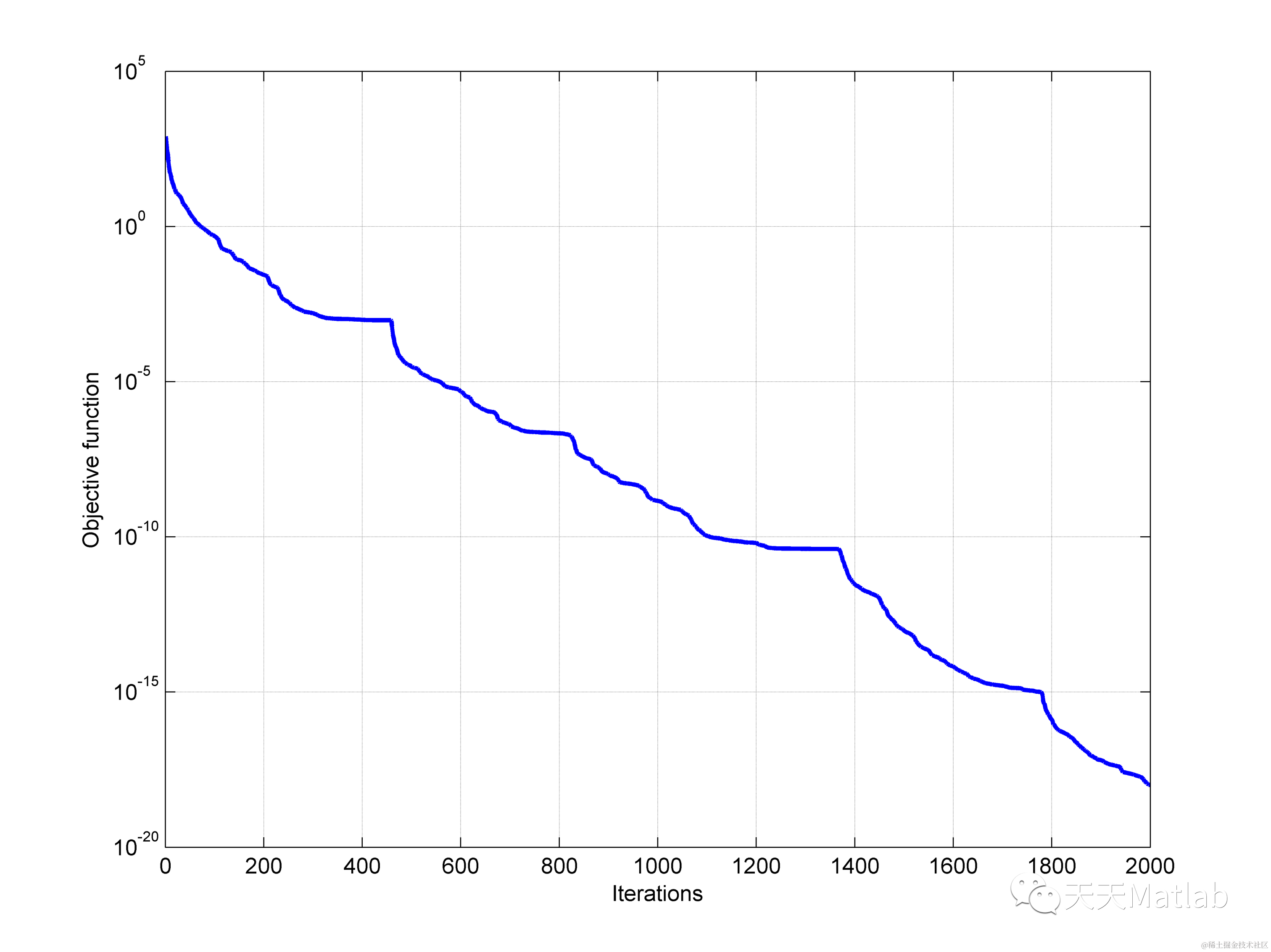 xlabel('Iterations'); ylabel('Objective function'); grid on;