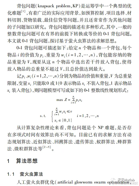 %求解0-1背包问题的改进萤火虫群算法(WGFA)