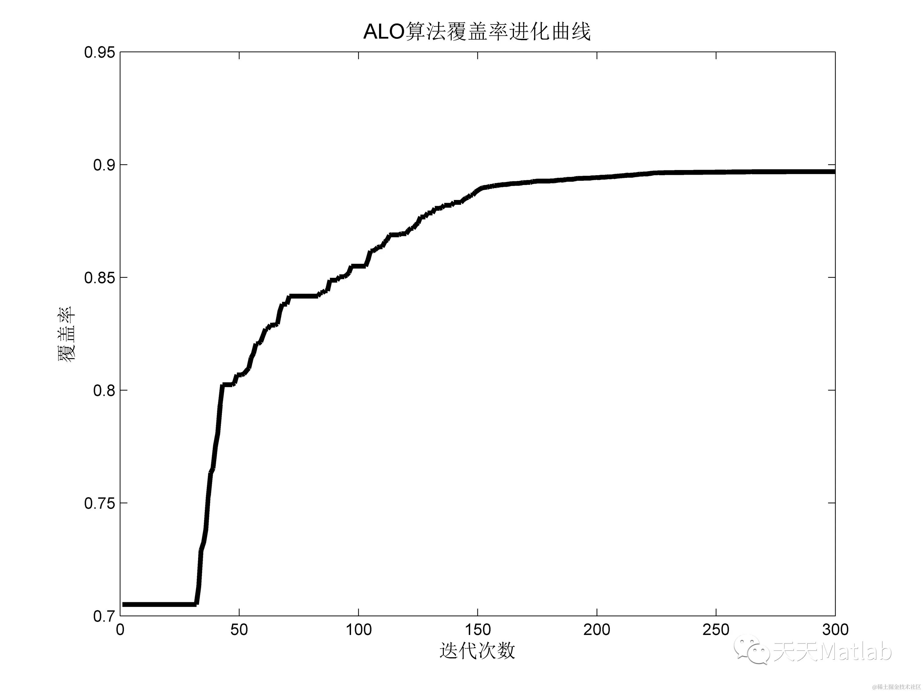 title('ALO算法覆盖率进化曲线', 'fontsize', 13);