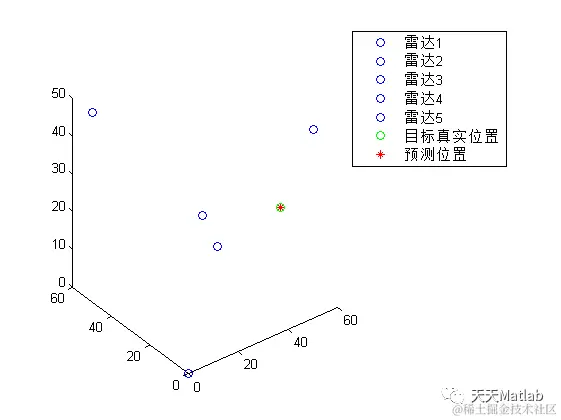 legend('雷达1','雷达2','雷达3','雷达4','雷达5','目标真实位置','预测位置')