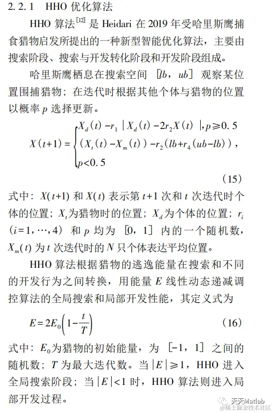 支持向量机 (Support Vector Machines, SVM) 是一种应用广泛的机器学习方法, 具有理论知识清晰完备,适应性和泛化能力良好的优点, 核心思想是在特征空间中寻找到一个最优超平面将两类样本尽可能大的分开, 能够较好的处理小样本、非线性和克服“维数灾难”问题, 并且表现出优秀的分类能力和泛化能力而被广泛应用于分类和回归等领域. 但是 SVM 对核函数的参数选取对分类效果影响很大, 不合适的参数可能使得分类器性能大大降低. 针对 SVM 核参数的选取问题, 目前尚没有统一有效的方法. 传统的参数选择方法如实验法、网格搜索法等由于耗时过长和不必要的验证流程等缺点, 更常用的方法是群智能算法如蚁群算法、遗传算法和粒子群算法等优化支持向量机核参数.粒子群算法由于算法结构简单、寻优能力相对较好, 近年来选择哈里斯鹰算法优化 SVM 参数成为研究热点之一.。