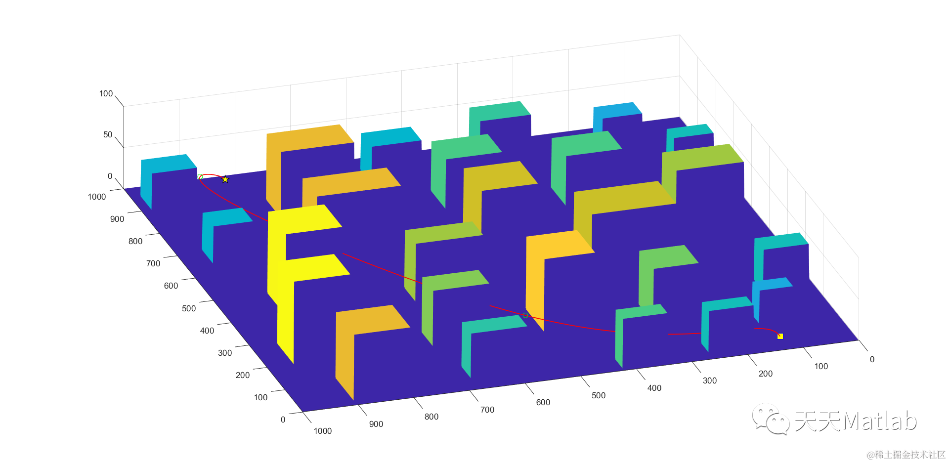 % 构造曲面网格,用于插值判断路径是否与山峰交涉