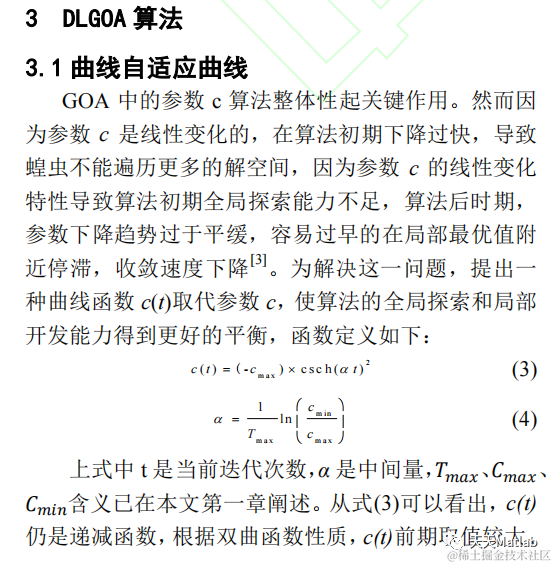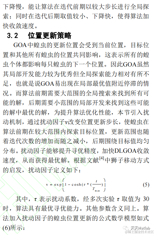 蝗虫优化算法(Grasshopper Optimization Algorithm, GOA)在2017年被Saremi等人首次提出。GOA原理易懂、参数较少,易于实现。然而该算法收敛速度慢,容易收敛早熟,虽然具有强大的局部开发能力,但全局勘探的能力仍然有待提升。为了解决这些问题,在2019年文献[2]提出了一种基于动态权重机制和随机跳跃策略(DJGOA)的改进蝗虫优化算法,首先动态权重机制促进了算法迭代的利用,自适应调整蝗虫的搜索空间范围;随后使用随机跳跃策略有助于算法跳出局部最优。李洋洲等在2019年对参数c使用两种曲线自适应改进策略,这种基于曲线自适应和 模 拟 退 火的蝗虫 优 化 算 法(SA-CAGOA),在求解精度方面有了明显改进。然而以上所引文献仍存在收敛速度慢、寻优精度有待优化的问题,本文提出一种具有扰动机制和双重搜索能力莱维飞行的蝗虫改进算法(DLGOA)。首先,提出动态自适应曲线的函数取代原本线性递减的参数c,使全局搜索和局部开发得到更好的平衡;其次,设置扰动因子改变位置更新步长,算法的寻优精度以及收敛速度均被有效提升;最后,引入带有双重搜索功能并具有高斯随机分布的约束因子动态步长的莱维飞行机制,不仅有效避免算法出现早熟收敛现象,并且增加了种群多样性,与此同时提高了寻优精度。