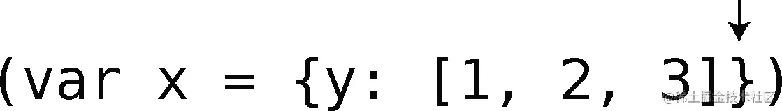 接下来的var x =,没有一个是括号,因此会被忽略。
