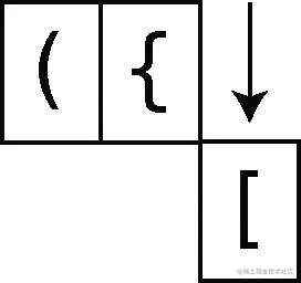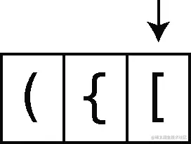 第8步:于是检查栈顶的元素,发现那是一个左方括号。因为刚才读到的右方括号能与其配对,所以将左方括号弹出。