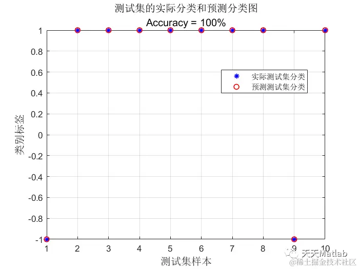 title({'测试集的实际分类和预测分类图';['Accuracy = ',num2str(accuracy*100),'%']},'FontSize',12);
