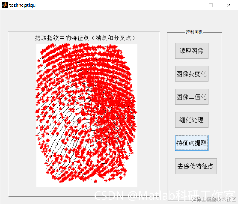 end %用模板匹配法进行指纹特征点的提取,端点和分叉点