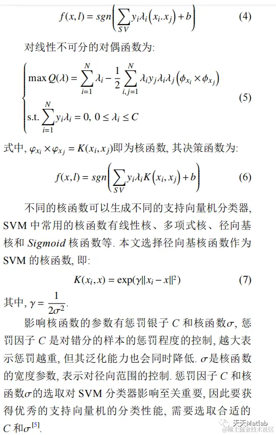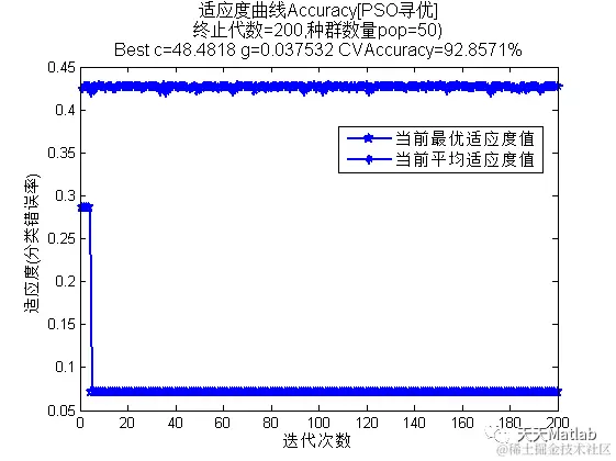 支持向量机 (Support Vector Machines, SVM) 是一种应用广泛的机器学习方法, 具有理论知识清晰完备,适应性和泛化能力良好的优点, 核心思想是在特征空间中寻找到一个最优超平面将两类样本尽可能大的分开, 能够较好的处理小样本、非线性和克服“维数灾难”问题, 并且表现出优秀的分类能力和泛化能力而被广泛应用于分类和回归等领域. 但是 SVM 对核函数的参数选取对分类效果影响很大, 不合适的参数可能使得分类器性能大大降低. 针对 SVM 核参数的选取问题, 目前尚没有统一有效的方法. 传统的参数选择方法如实验法、网格搜索法等由于耗时过长和不必要的验证流程等缺点, 更常用的方法是群智能算法如蚁群算法、遗传算法和粒子群算法等优化支持向量机核参数.粒子群算法由于算法结构简单、寻优能力相对较好, 近年来选择粒子群算法优化 SVM 参数成为研究热点之一.。