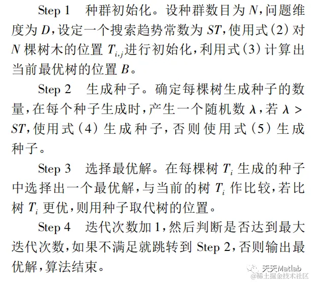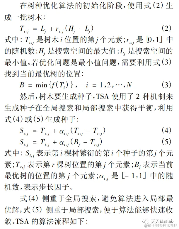 树种优化算法( TSA)是一种新兴的智能优化算法,是 2015 年由 Kiran 提出的,算法的思想是模拟大自然树木生长繁衍的过程。树种优化算法的结构简单,寻优能力较强,在彩色图像多阈值分割、短期电力负荷预测和结构损伤识别等领域中应用都获得了较好的效果。