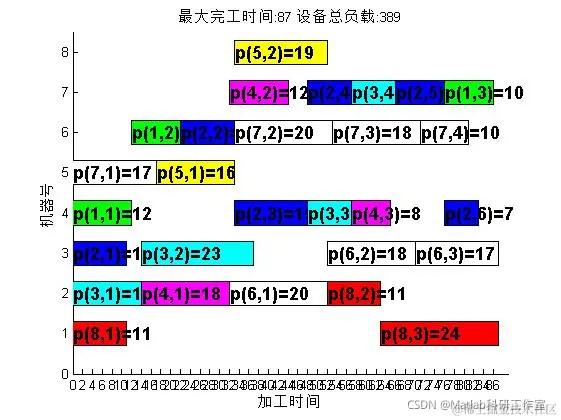 ganttChart1(J,best_p,M,mac_t);