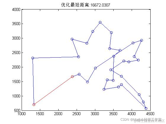 title(['优化最短距离:',num2str(trace(end))]);