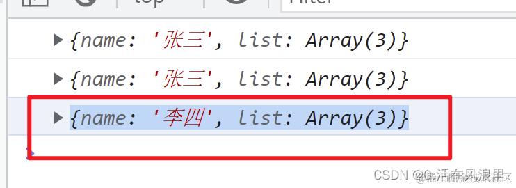 console.log(newObj); //{name: '李四', list: Array(3)} ok 关机下班