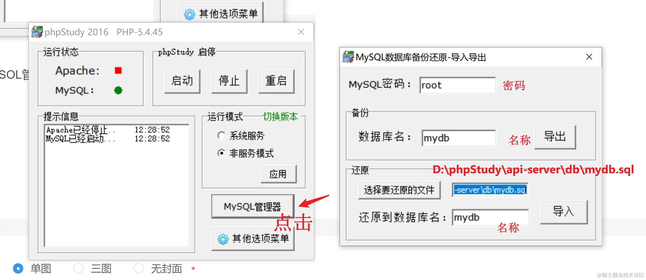 2 点击MySOL管理器导入后端代码