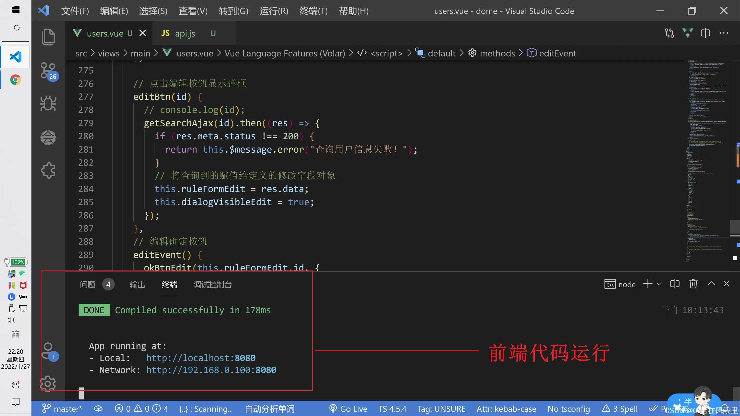 - 3 .运行前端代码(npm run serve)