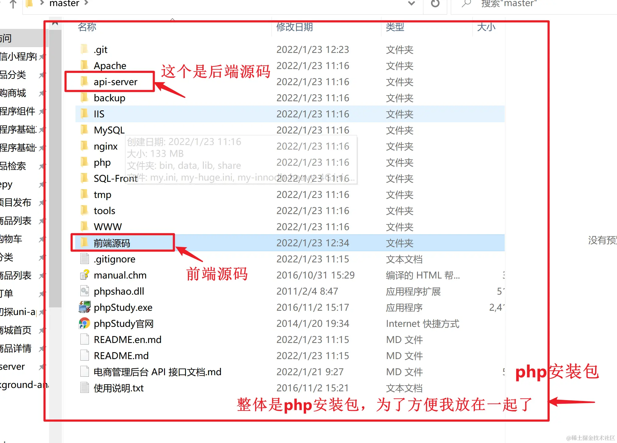 以上是项目的服务器php、后端、前端、已经可以正常运行