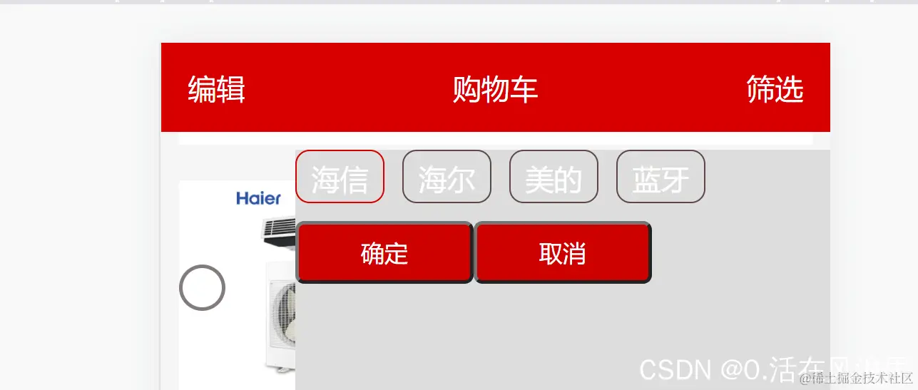 - 有编辑、单选、全选、筛选...、手写没有用到Vant库,样子也不是很丑 div+section
