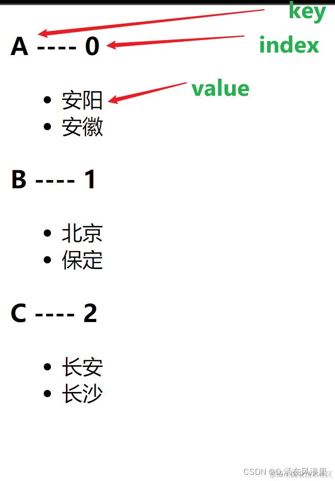 <div v-for="(item, index) in arr2">{{item}} ---- {{index}}</div>