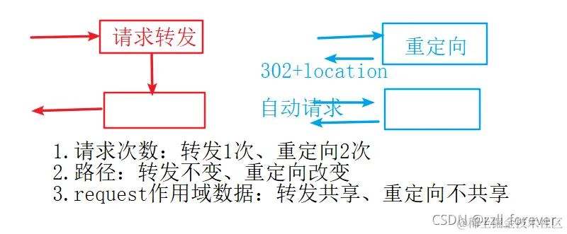 返回值字符串有2种情况:请求转发(默认)、重定向
