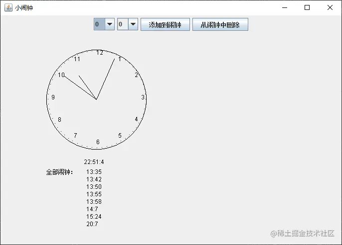 实现:先创建一个面板显示闹钟,面板内创建按钮增加闹钟,按钮查看闹钟,按钮删除闹钟