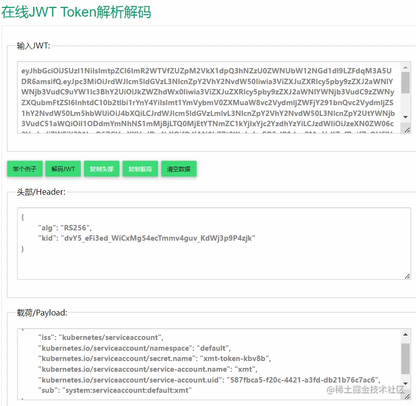 我们可以通过在线的 jwt 解码工具来查看这个 secrets,他是一个 JWT 编码的信息