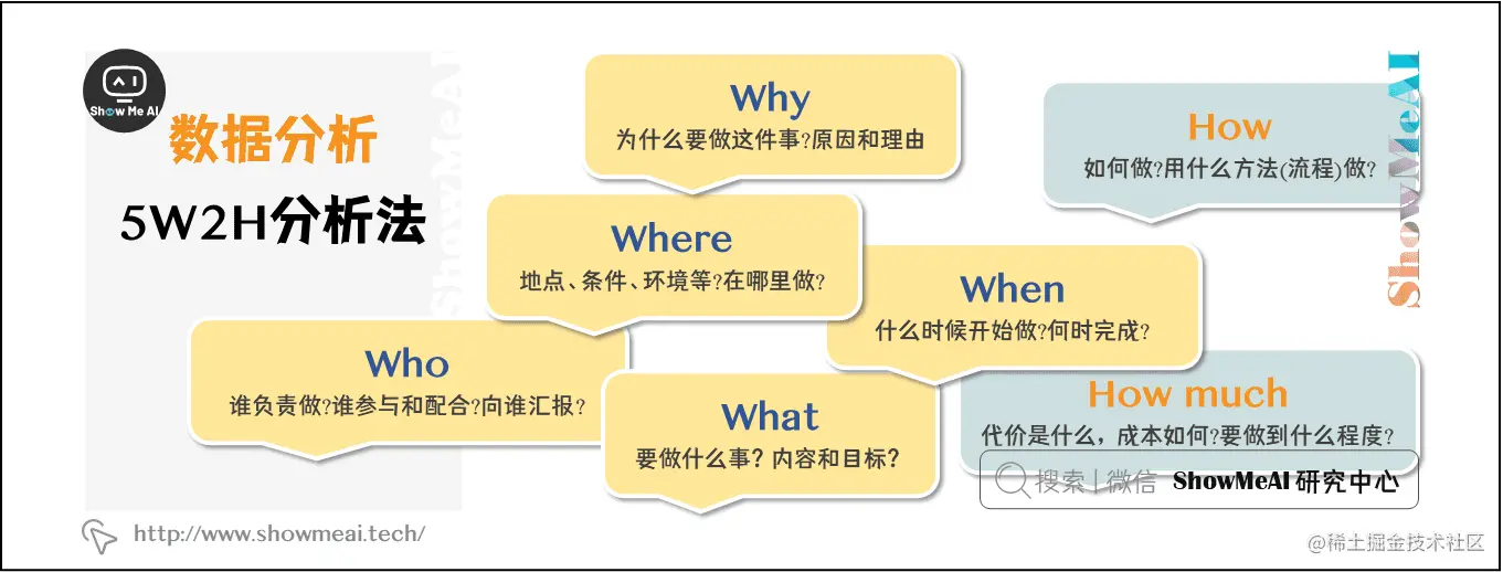 5W2H分析法,又称七问分析法,是以5个W开头的英语单词和两个以H开头的英语单词进行设问,发现解决问题的线索,寻找新思路,进行设计构思,从而作出新的发明项目或者作出新的决策的方法。