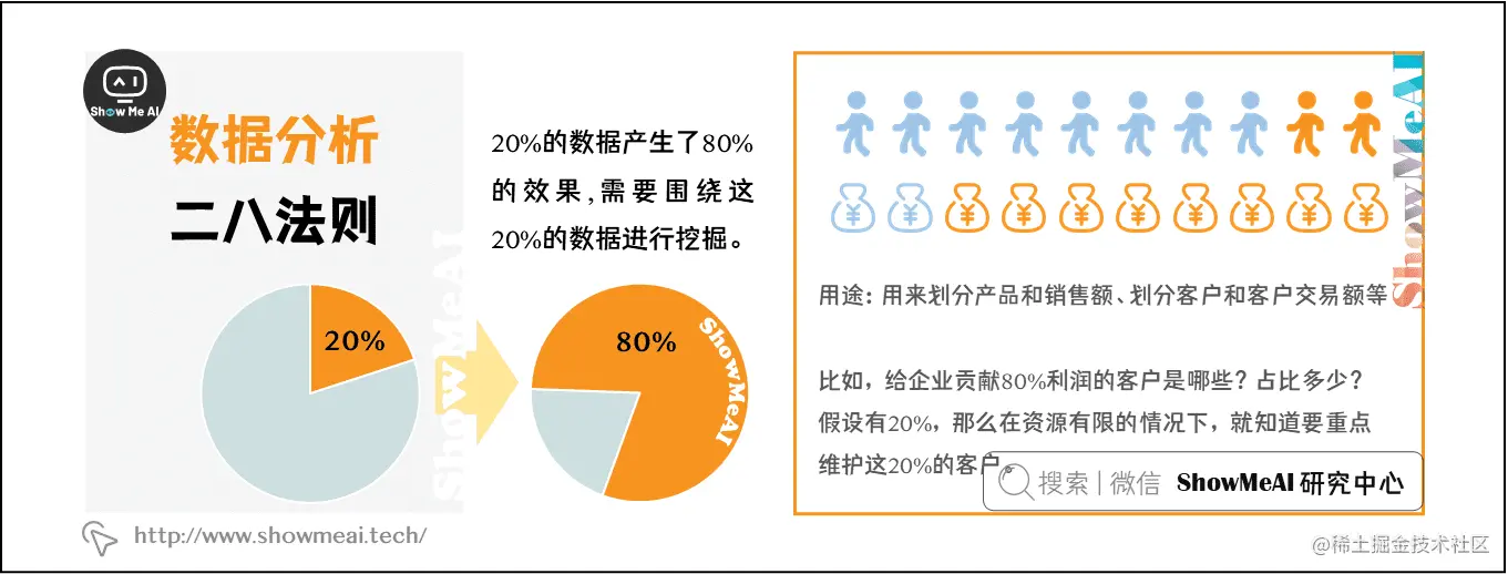 源于经典的二八法则,在数据分析中,可以理解为20%的数据产生了80%的效果,需要围绕这20%的数据进行挖掘。