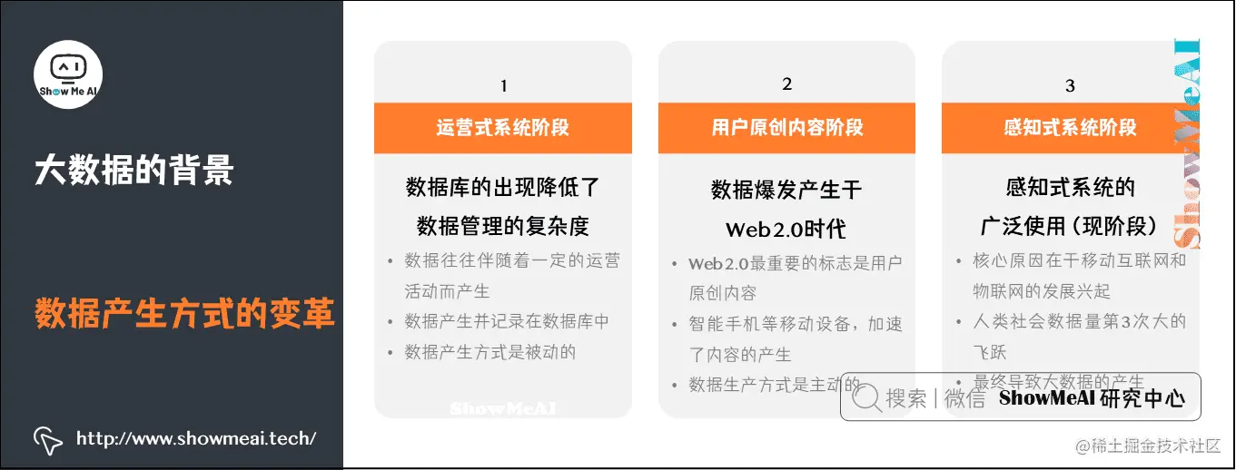 大数据的兴起也跟数据产生方式的变化有关,数据产生方式的变革促成大数据时代的来临。