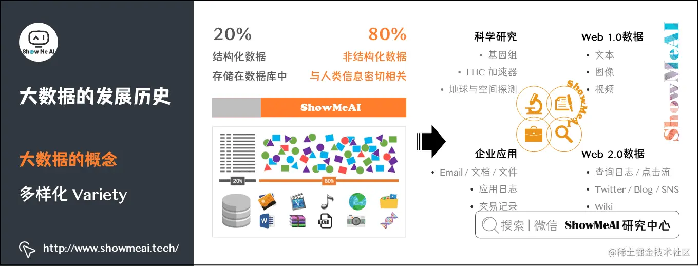 大数据数据形态丰富:大数据由结构化数据和非结构化数据组成。