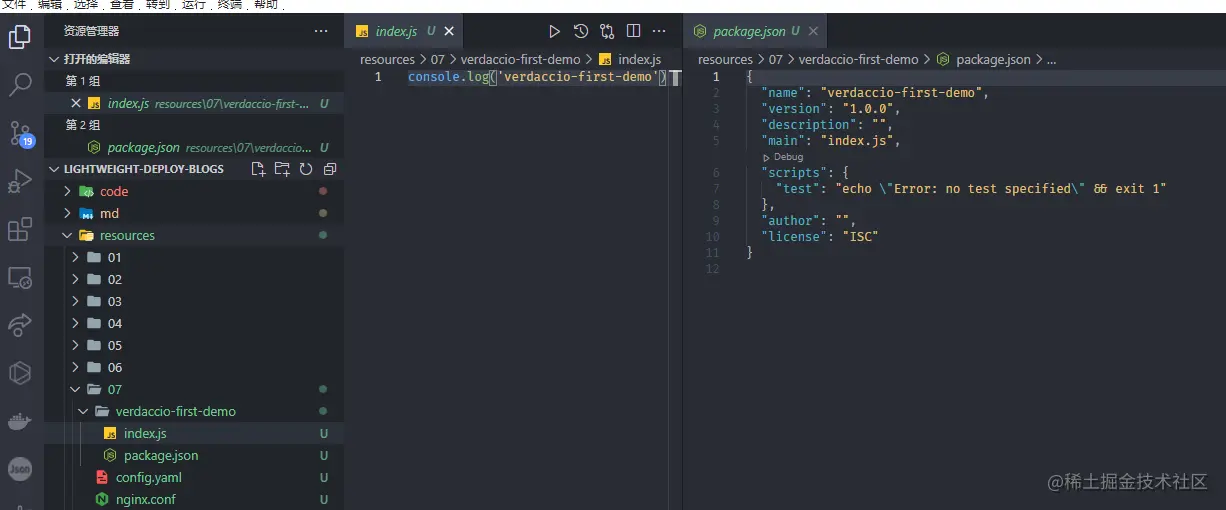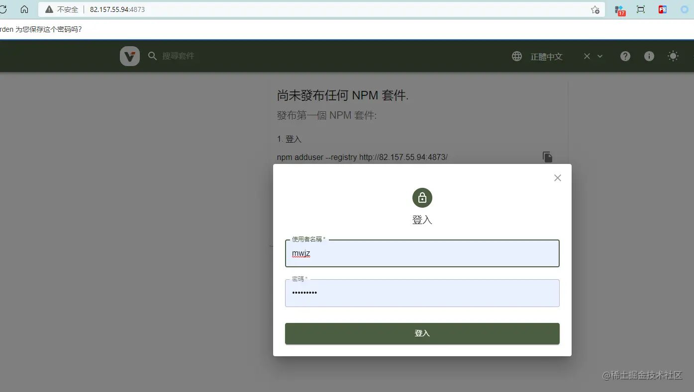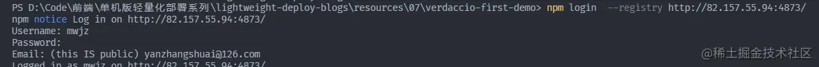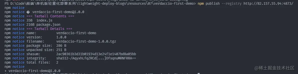 部署成功后,可以在本地创建一个测试项目,发布到 Verdaccio 仓库中。