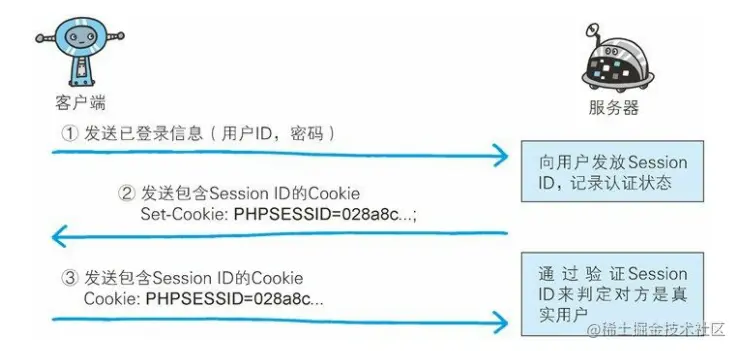 服务在向客户端返回响应时,会在首部字段Set-Cookie内写入 Session ID(如 PHPSESSID=028a8c…)。