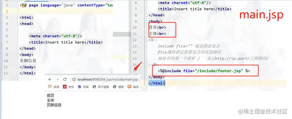 web下创建一个include目录,里面分别写main.jsp和footer.jsp