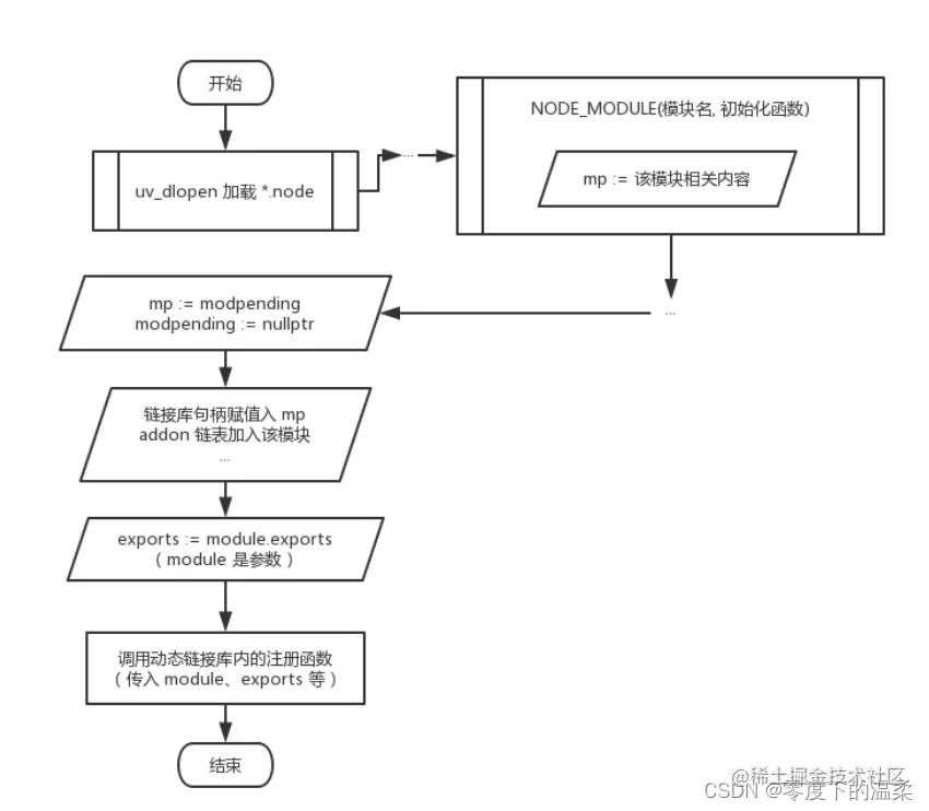 C++ 拓展模块(.node二进制链接库文件)的具体加载过程: