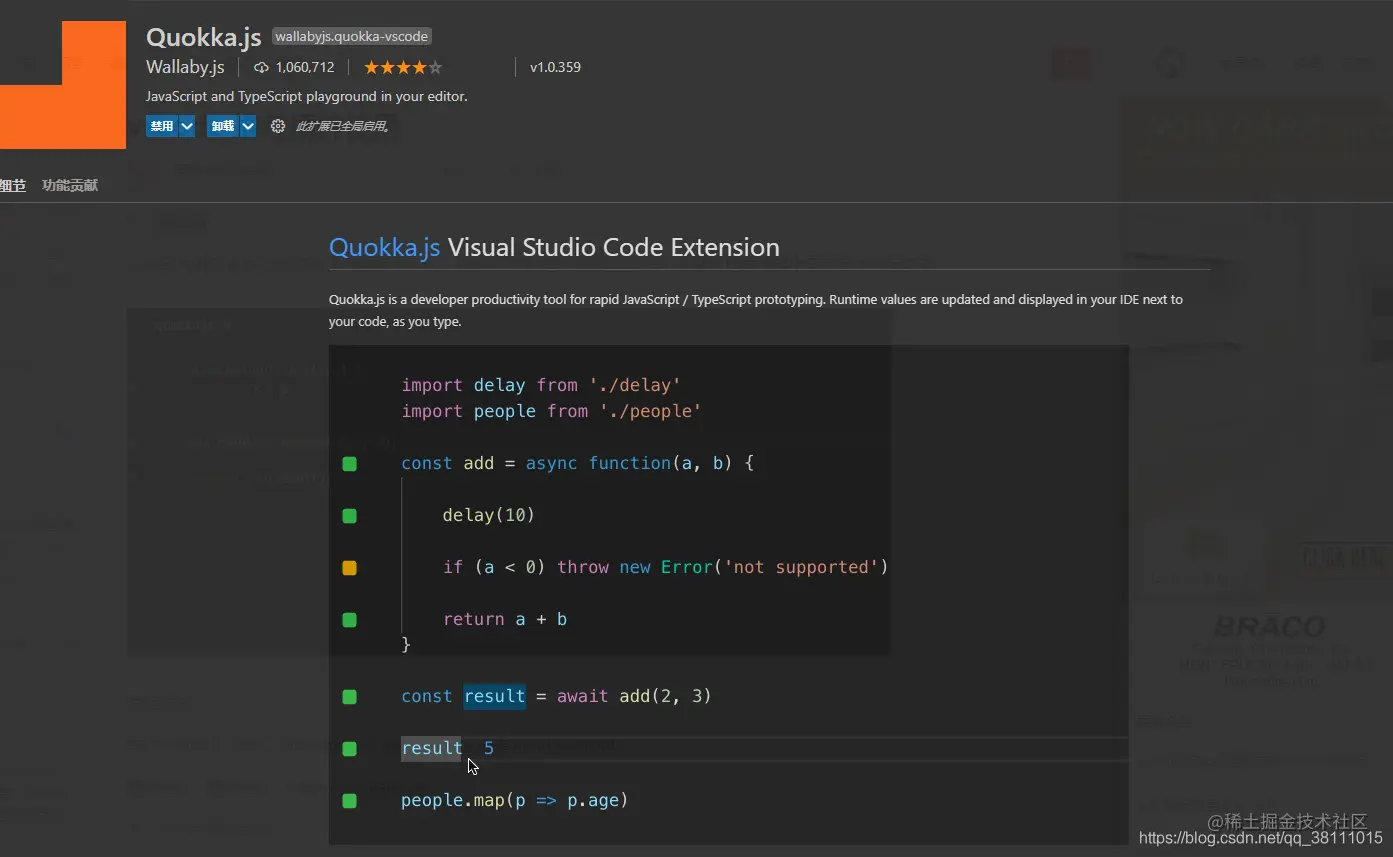 - Quokka.js这个插件 主要是基于js或者ts 在编辑器中快速查看键入代码的结果 很方便 不需要再打console控制台看