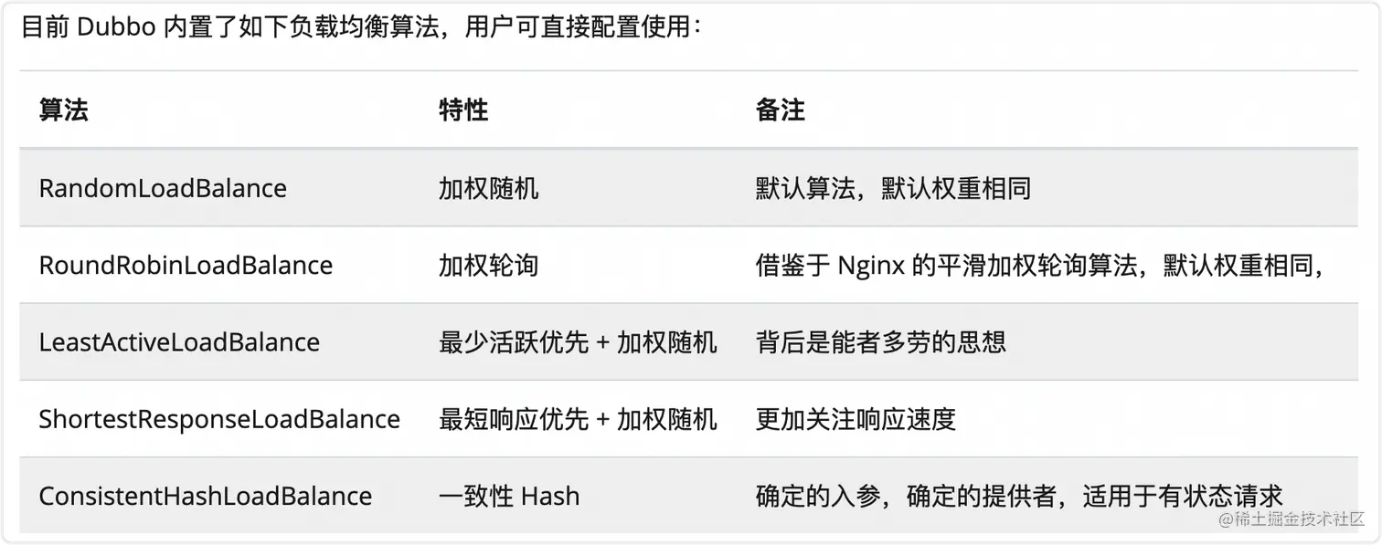 而Dubbo的负载均衡方式就更多了: 我们通过负载均衡算法,可以解决请求在同一个集群下的的不同机子访问不平衡的问题。