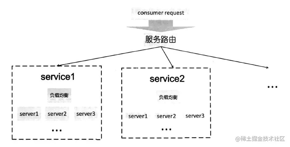 从图中我们便可以清晰的看出。服务路由规则是将请求分发到不同的服务集群中的。而负载均衡,则是在同一个服务集群中进行请求分发的方式。