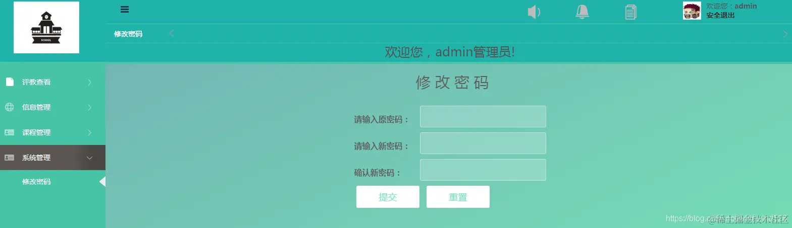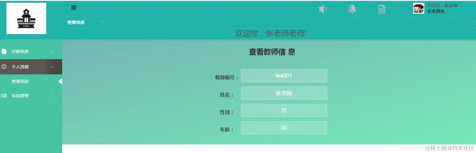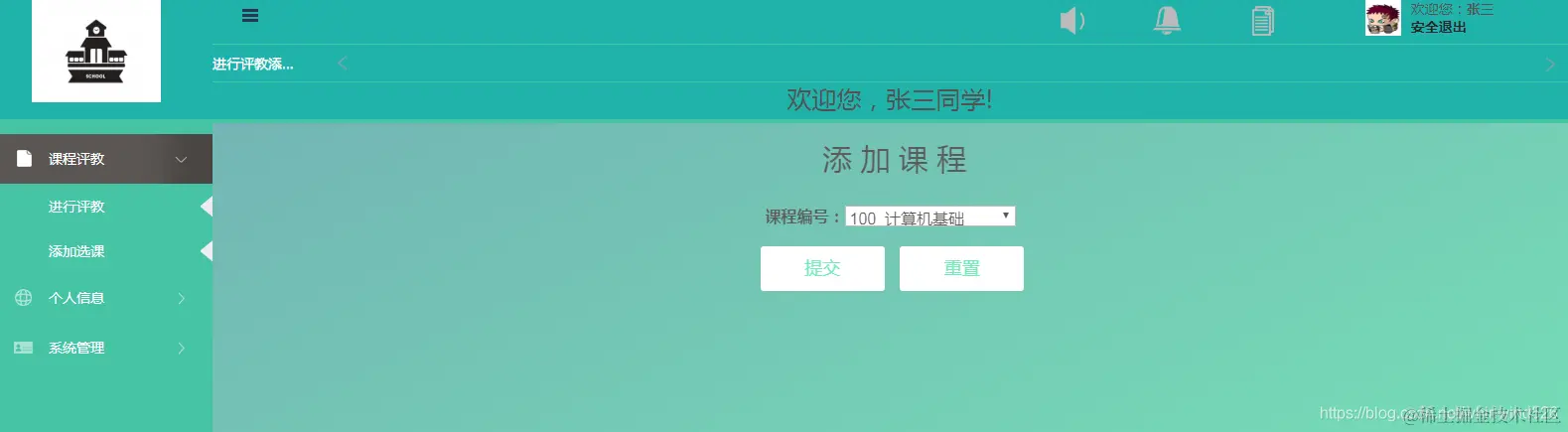 本系统基于SSM框架实现。主要包含三个角色,管理员,老师,学生。管理员主要管理学生,老师,课程。学生可以进行选课,选完课后可以对任课老师评价。老师可以查看自己的评价信息。