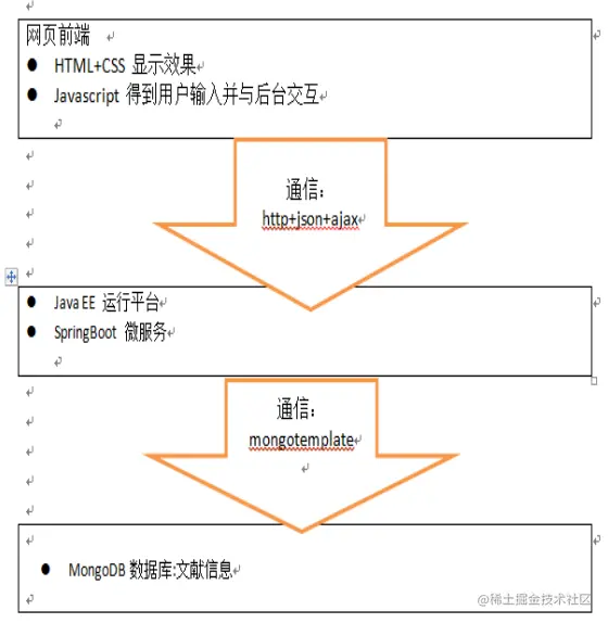 该功能涉及到系统的三层结构:网页前端、运行在服务器 JAVA EE 平台的微服务架构,还有文档数据库 MongoDB。