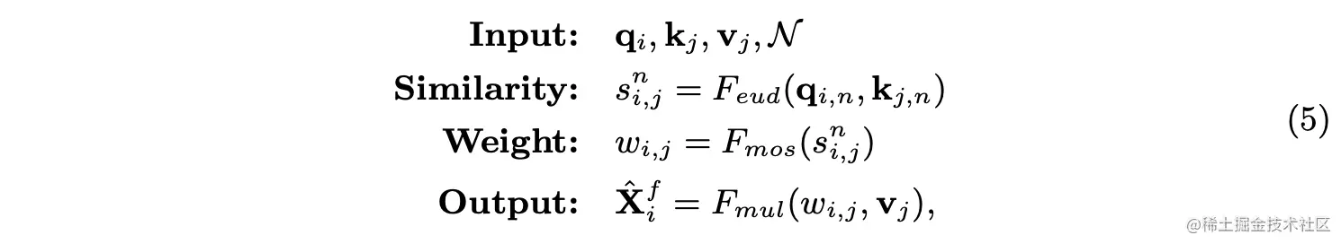 ,,,、和为对应的线性变换,和为特征图上的第和位置上的特征,为相似度函数,默认为点积,为归一化函数,默认为softmax,为权重集成函数,默认为矩阵相乘,为输出特征图的第位置上的特征。