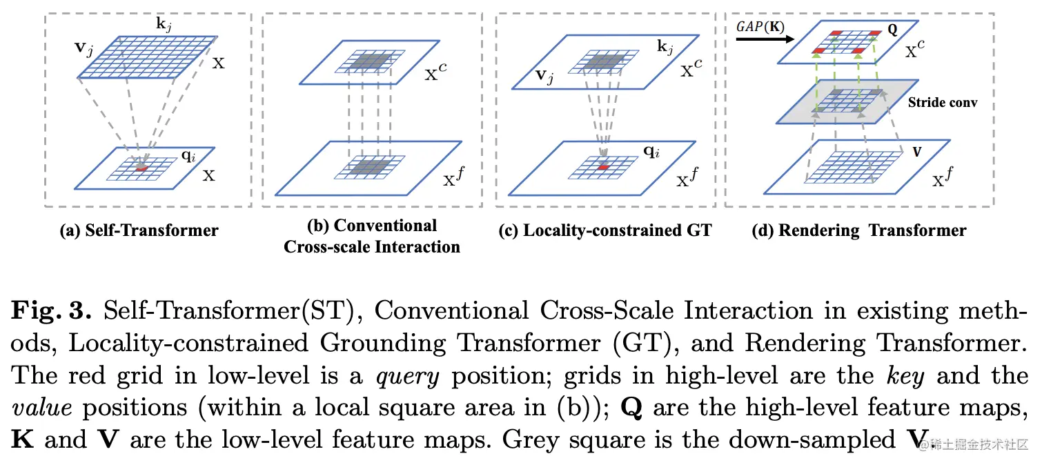 - RT(Rendering Transformer):这是bottom-up形式的non-local操作,将低层特征(尺寸大的)分别用于高层特征的增强。