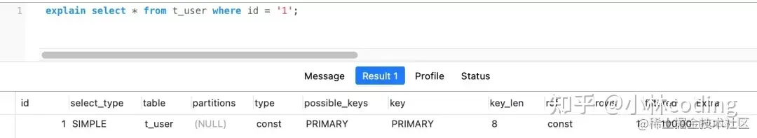 比如,下面这条查询语句,执行计划中 type = ALL,说明是通过全表扫描的方式查询数据的:
