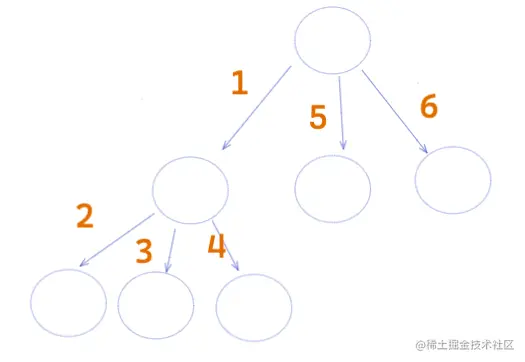 想着对于 ReactNode 来说必须要嵌套才行,所以单纯对于树结构 BFS 不太行,感觉还是得要递归才行,又想到了 DFS,但是这个遍历方式不一样,我又画了一张草图: