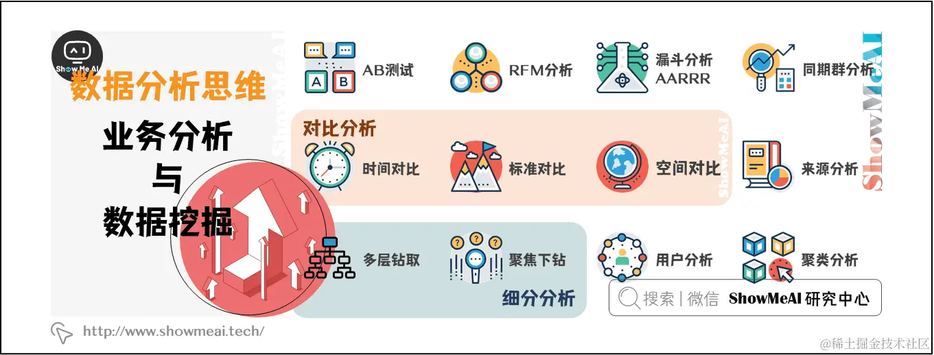 对比分析主要是指将两个相互联系的指标数据进行比较,从数量上展示和说明研究对象的规模大小,水平高低,速度快慢等相对数值,通过相同维度下的指标对比,可以发现,找出业务在不同阶段的问题。常见的对比方法包括时间对比,空间对比,标准对比。