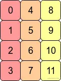 如果想要向下移动一列,则只需要跳过3个块既可(例如,从0到4只需要跳过1,2和3)。