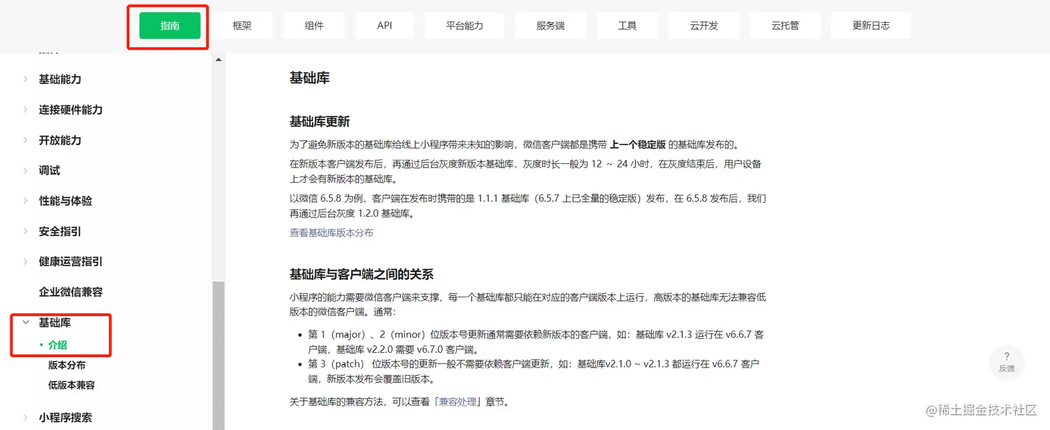 遇到问题时,先去官方文档中寻找,我们先来看下官方文档中对“基础库”的介绍: