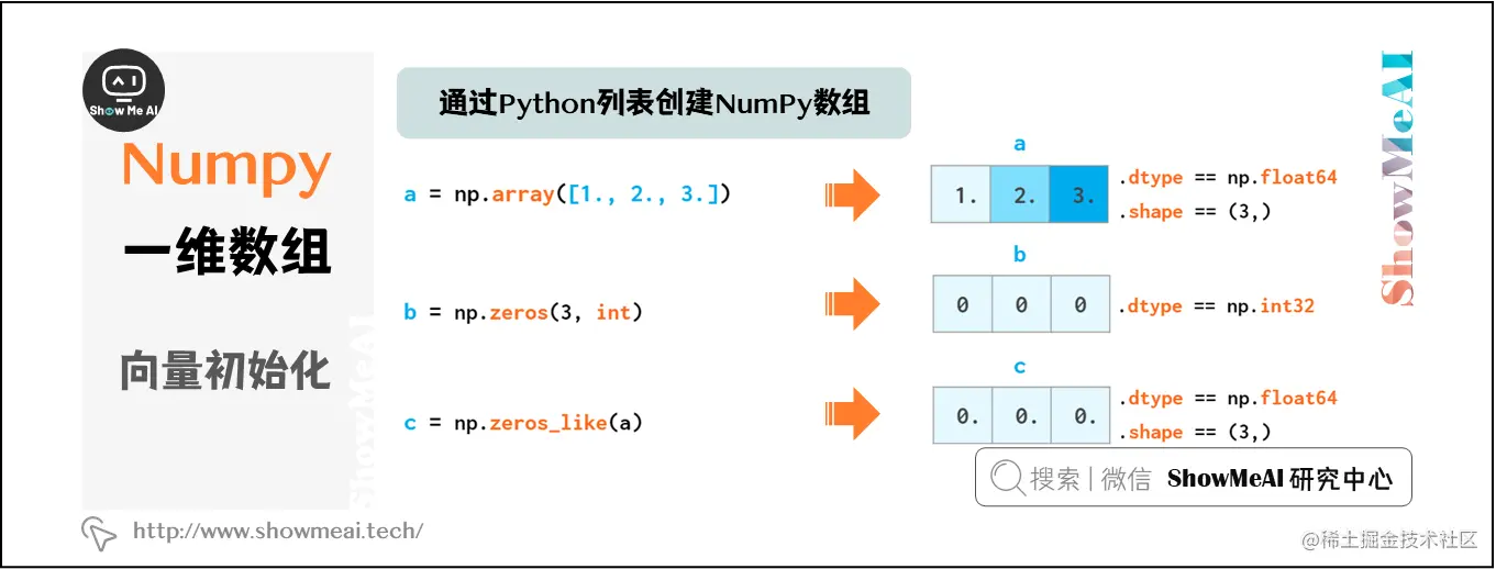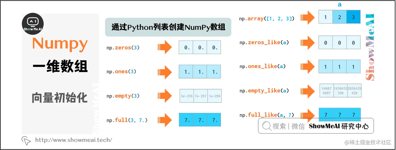 n维数组是NumPy的核心概念,大部分数据的操作都是基于n维数组完成的。本系列内容覆盖到1维数组操作、2维数组操作、3维数组操作方法,本篇讲解Numpy与1维数组操作。