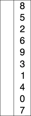 int A[] = { 8, 5, 2, 6, 9, 3, 1, 4, 0, 7 }; // 从小到大选择排序