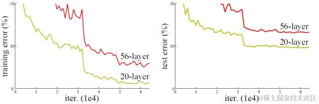 图3 20层与56层网络在CIFAR-10上的误差