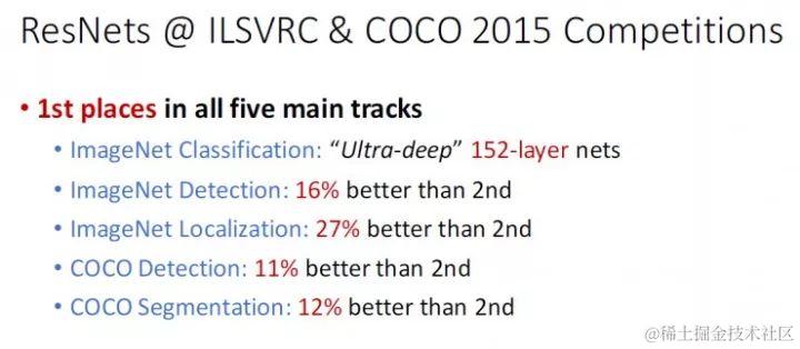 深度残差网络(Deep residual network, ResNet)的提出是CNN图像史上的一件里程碑事件,让我们先看一下ResNet在ILSVRC和COCO 2015上的战绩: