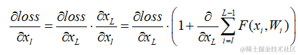 式子的第一个因子表示的损失函数到达的梯度,小括号中的1表明短路机制可以无损地传播梯度,而另外一项残差梯度则需要经过带有weights的层,梯度不是直接传递过来的。残差梯度不会那么巧全为-1,而且就算其比较小,有1的存在也不会导致梯度消失。所以残差学习会更容易。要注意上面的推导并不是严格的证明。\