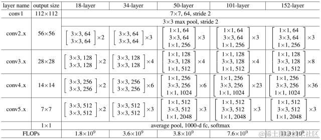 表1 不同深度的ResNet